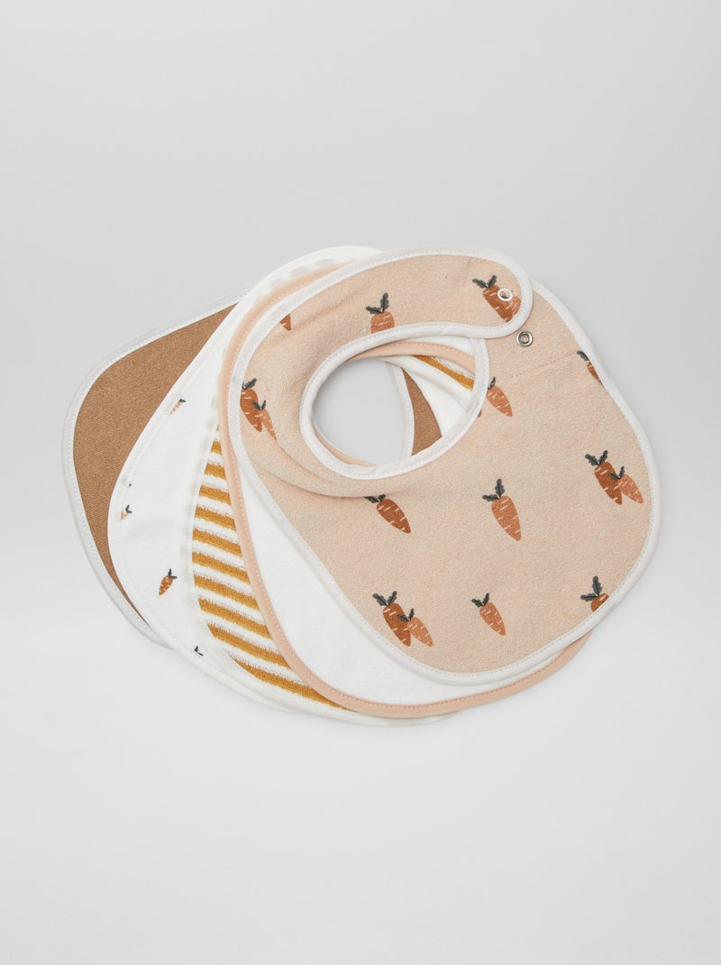 5 bavoirs à l'imprimés fantaisies à fermeture pressionnées - MARRON