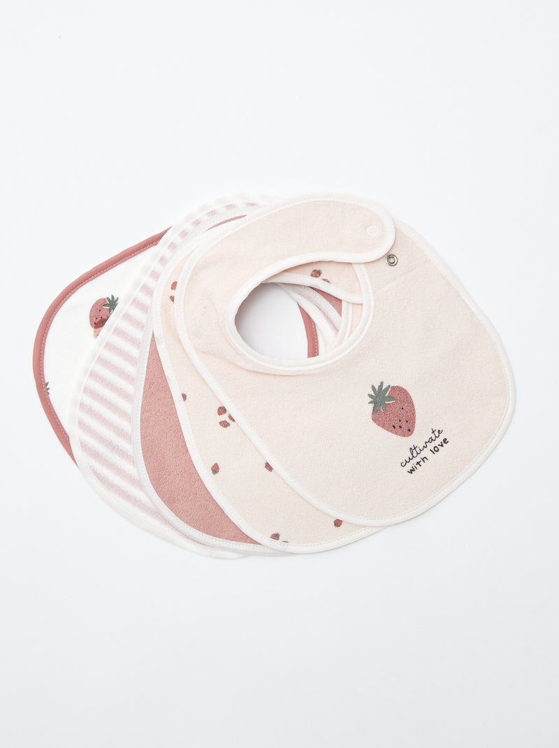 5 bavoirs à l'imprimés fantaisies à fermeture pressionnées - ROSE