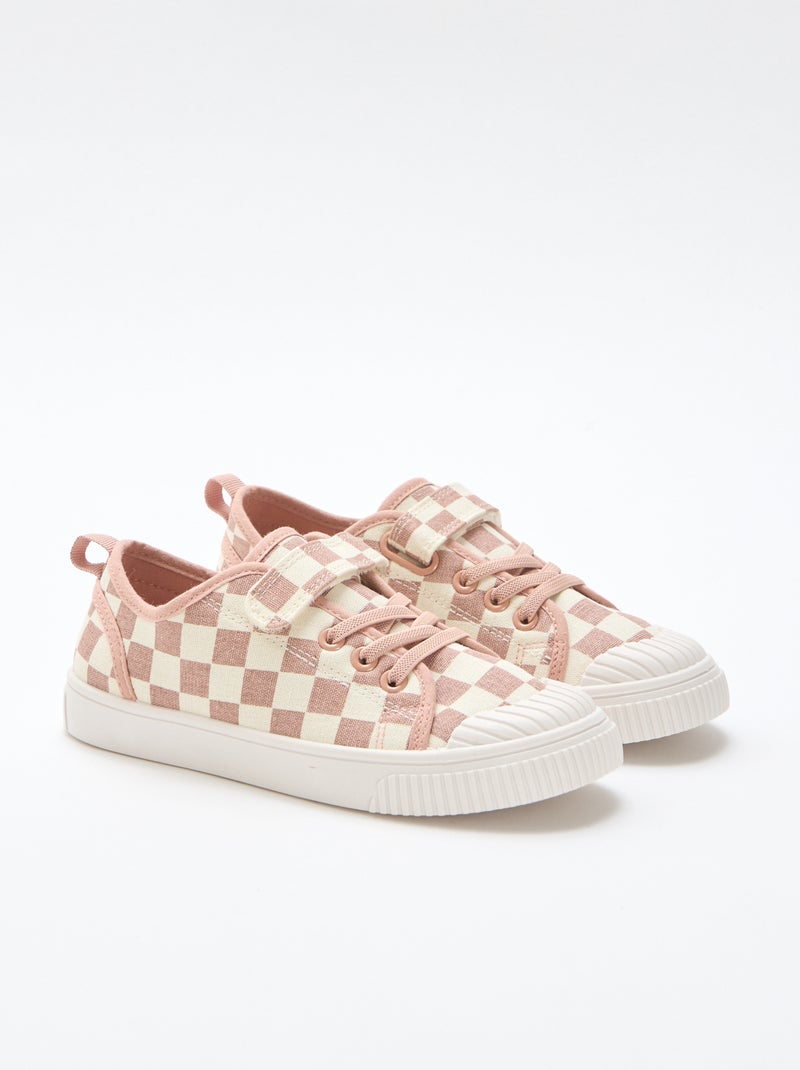 Baskets en toile imprimé damiers - Rose