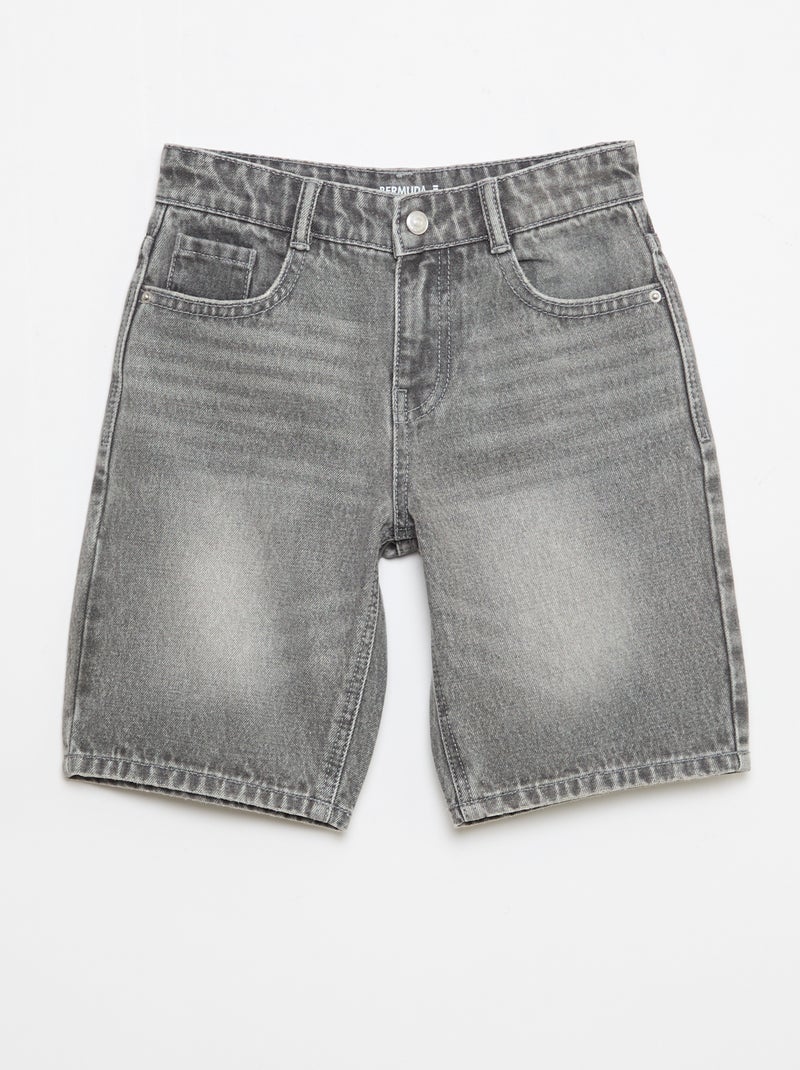 Bermuda denim slim fit stretch en coton - Gris