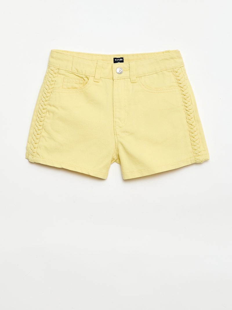 Bermuda en denim uni à 5poches - Jaune