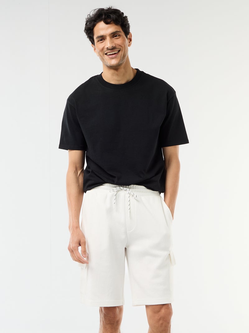 Bermuda en piqué de coton multipoches - Blanc