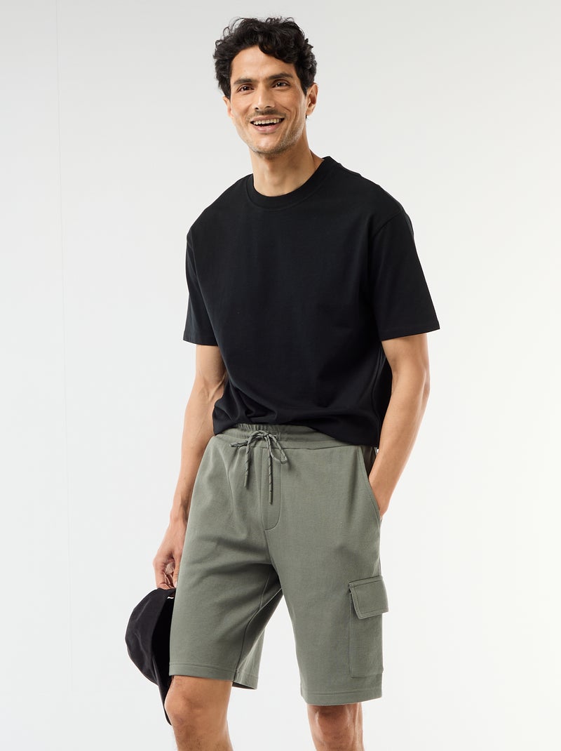 Bermuda en piqué de coton multipoches - Vert
