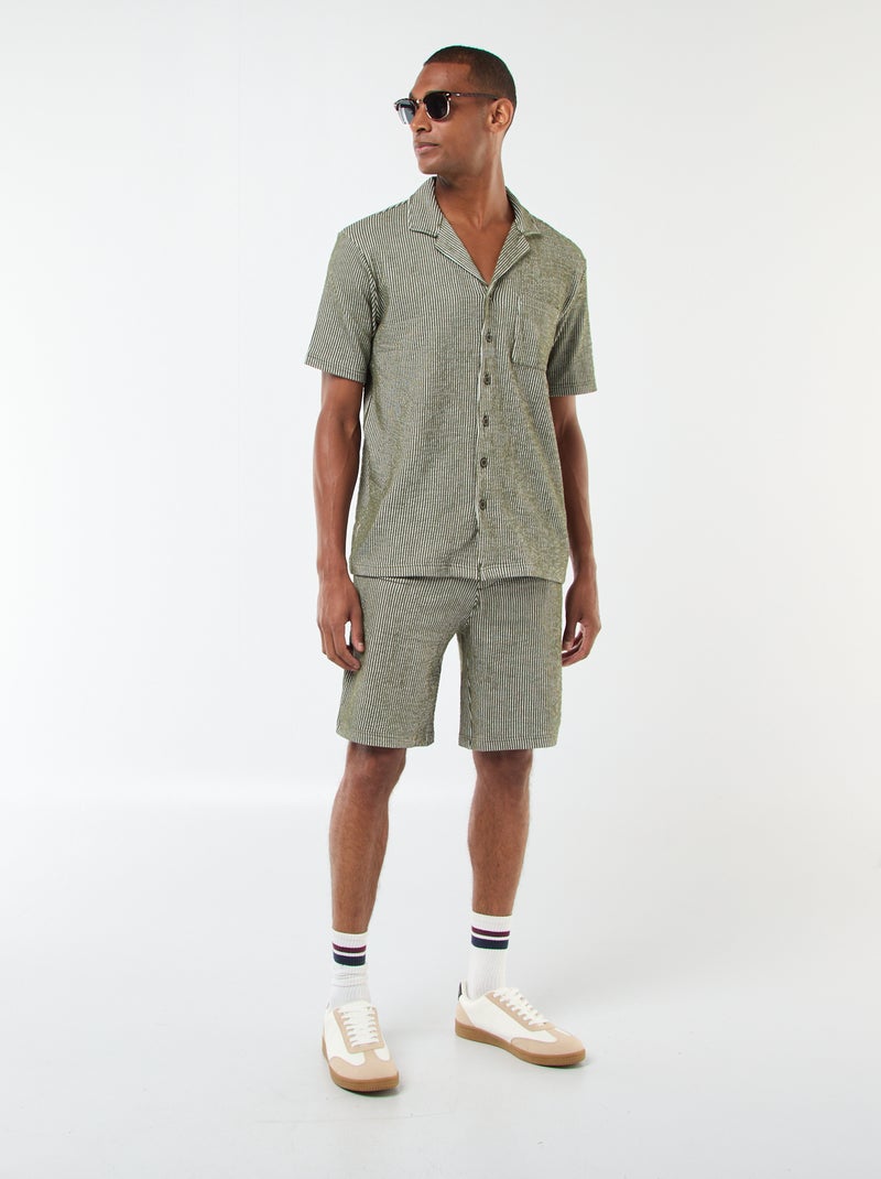 Bermuda matière type crépon à rayures - Vert