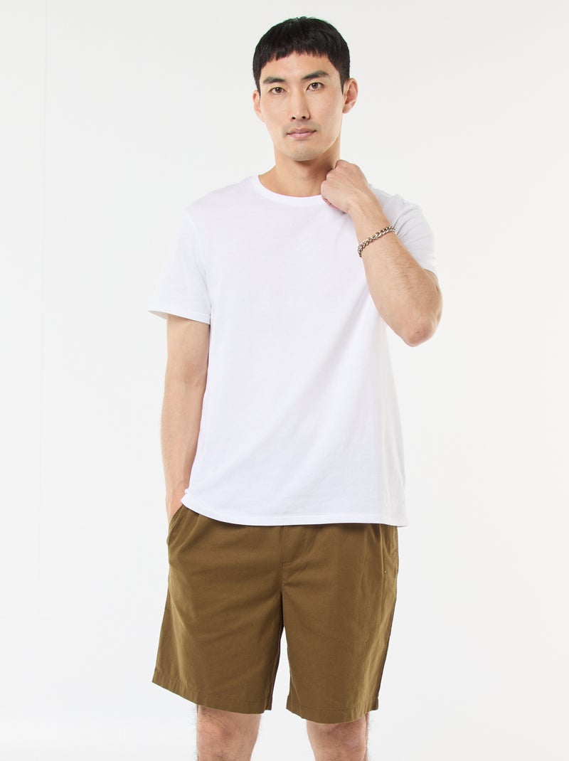 Bermuda uni en coton et lin - Vert