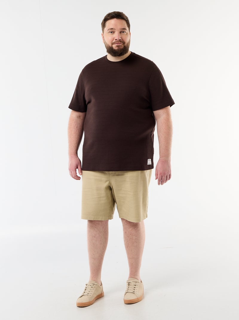 Bermuda uni en matière dobby - Beige