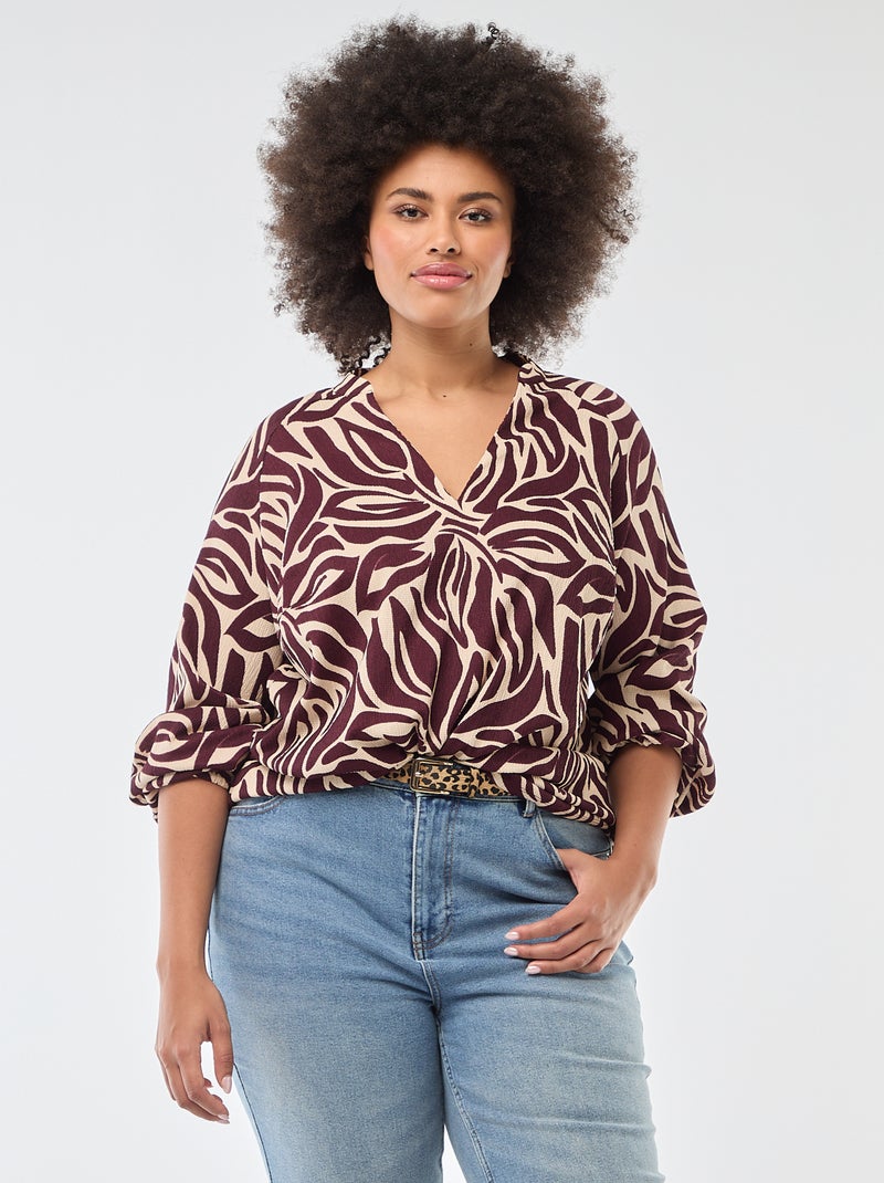 Blouse à col V avec motif allover - Rouge