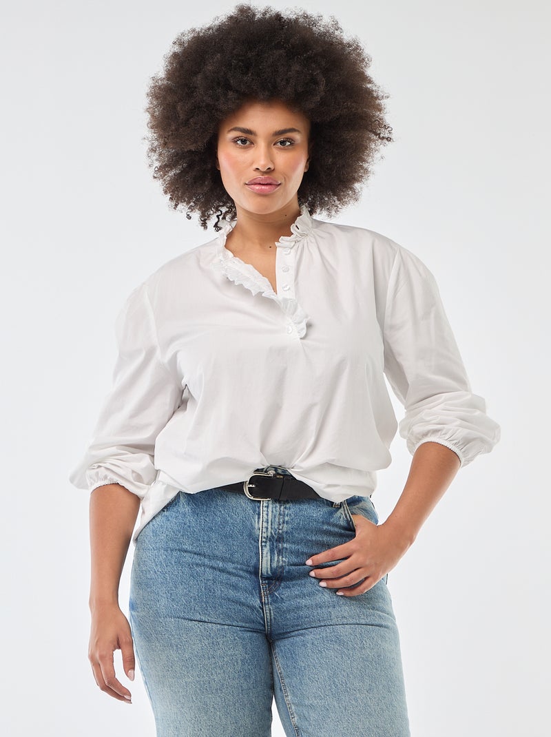 Blouse avec col montant volanté - Blanc