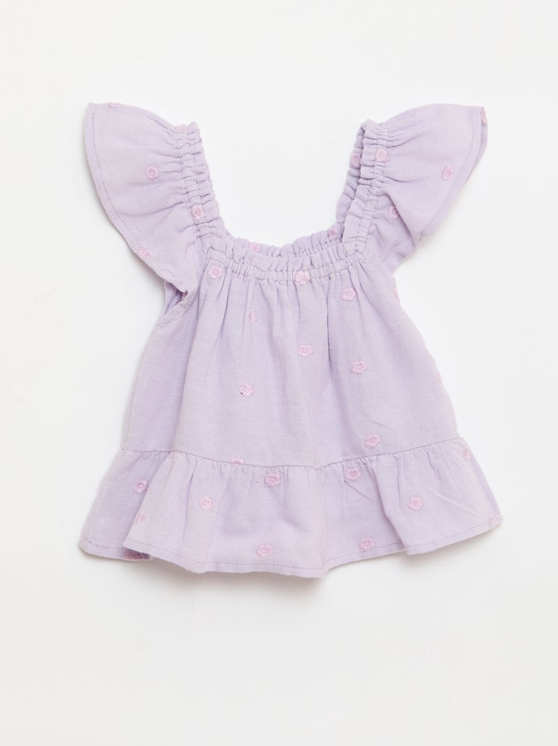 Une jolie blouse aux broderies printanières pour habiller votre fillette dès les beaux jours.