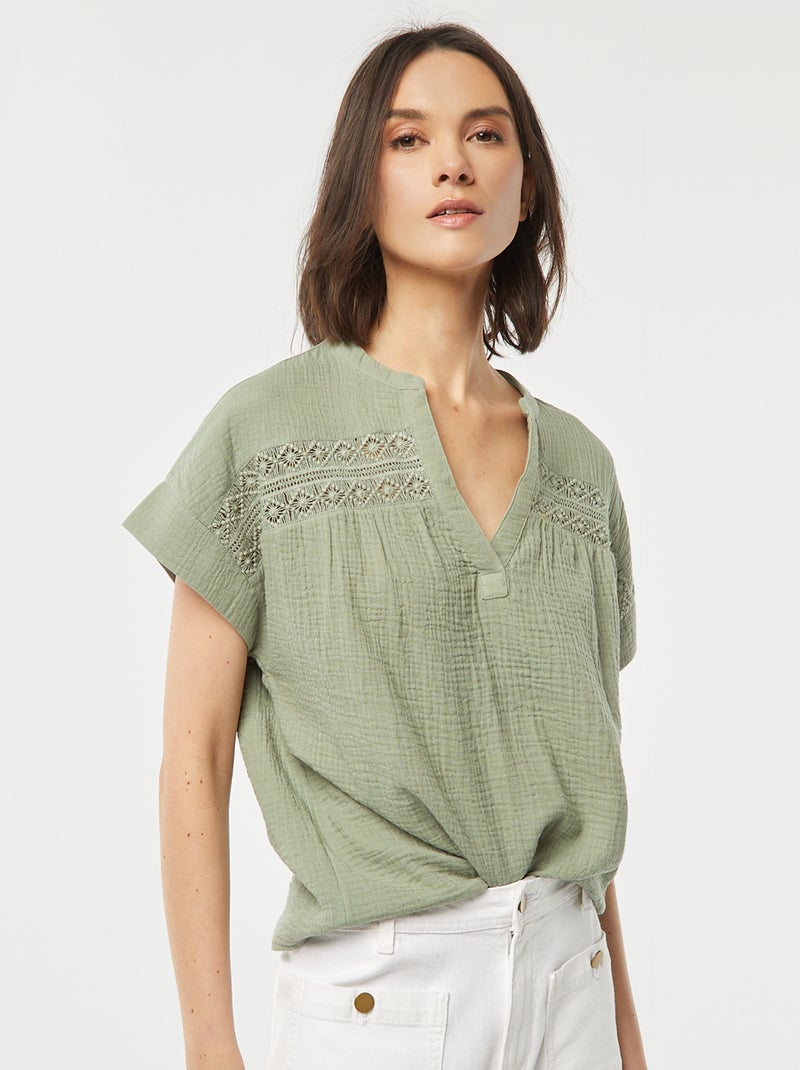 Une blouse en double gaze de coton avec de belles broderies fantaisies devant !