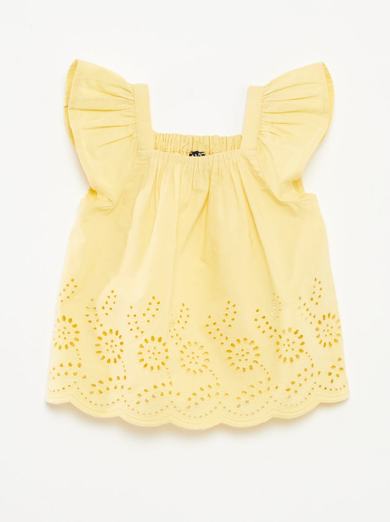 Blouse légère avec bretelles volantées et broderies - JAUNE