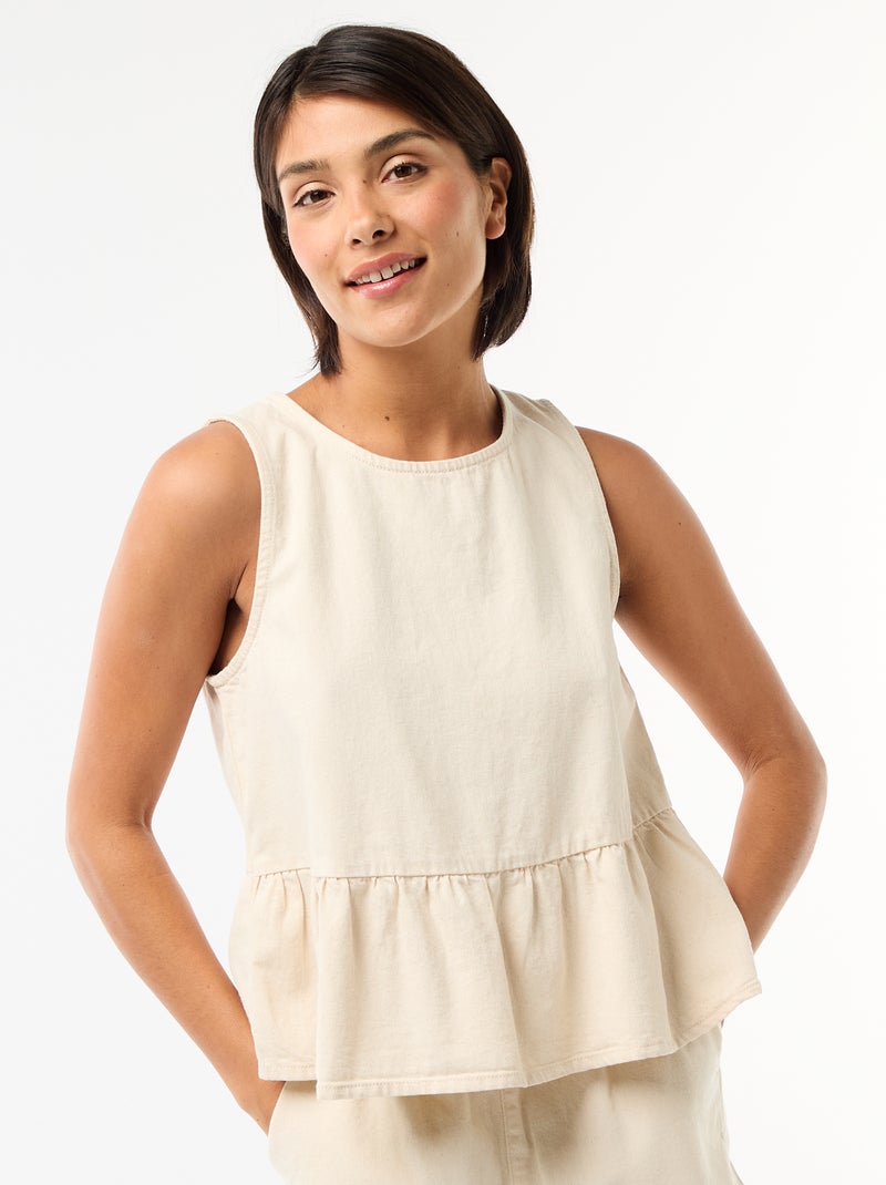 Blouse peplum en jean sans manches - Blanc