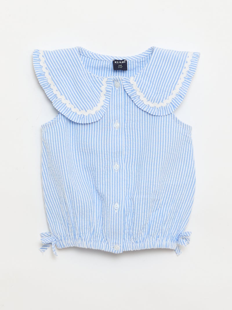 Blouse rayée en popeline en col claudine - Bleu