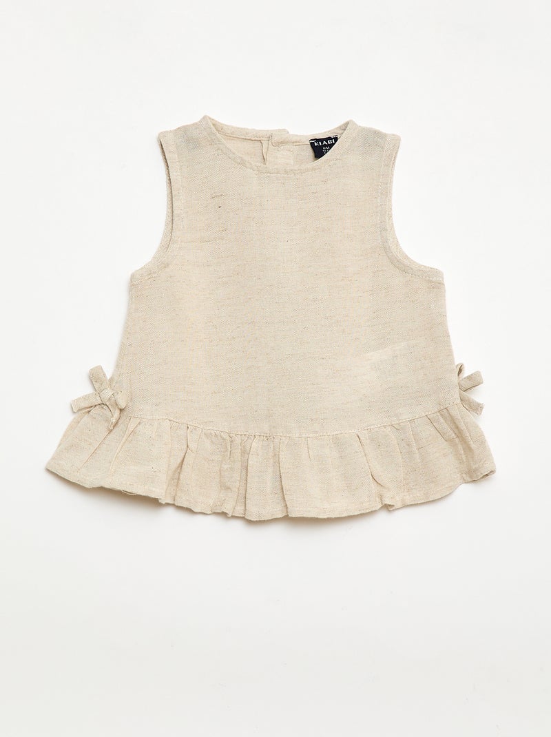 Blouse sans manches avec volants et nœuds - Beige