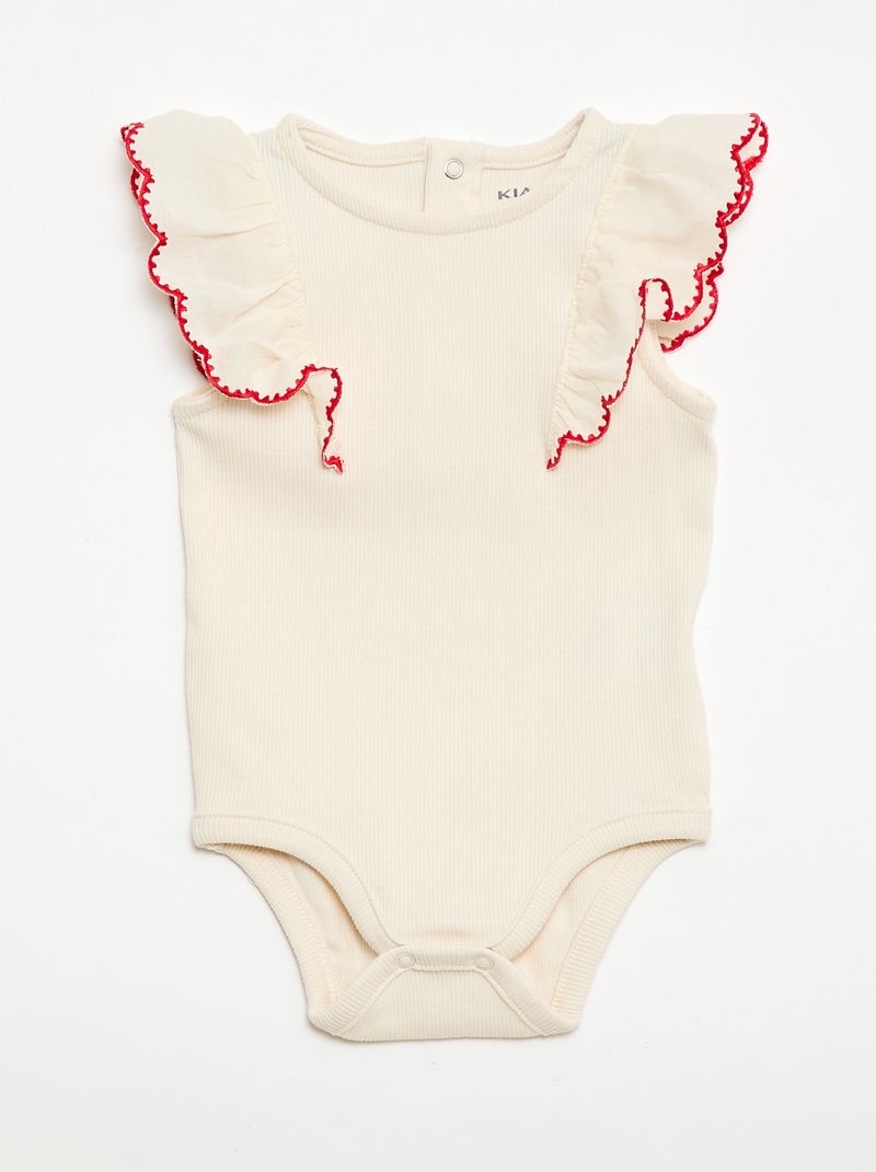 Body à manches courtes volantées - Ecru