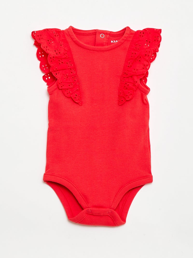 Body à manches courtes volantées - Rouge