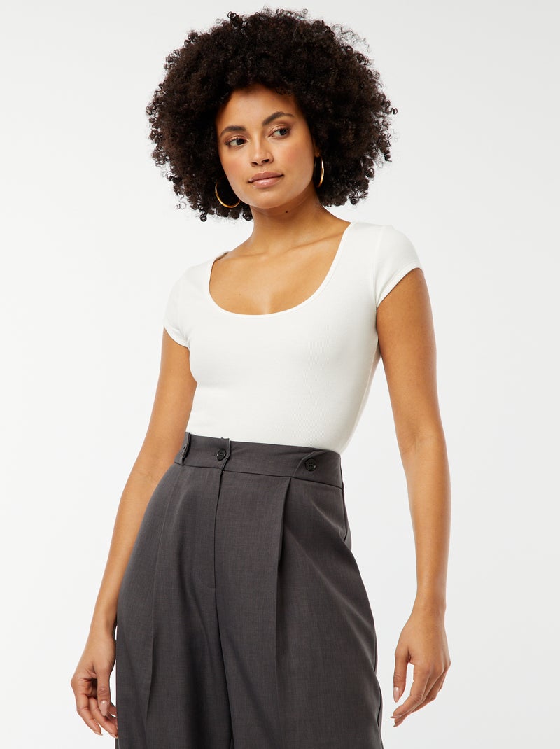 Body manches courtes côtelé - Blanc