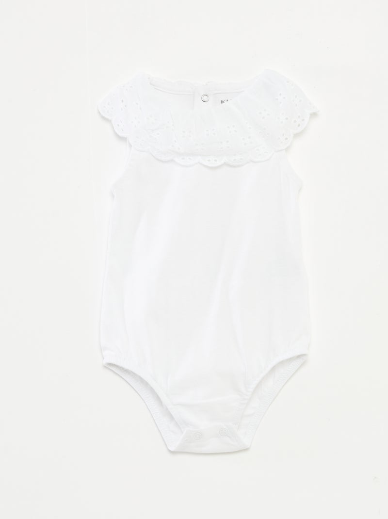 Body sans manches à col large en broderies anglaises - Blanc