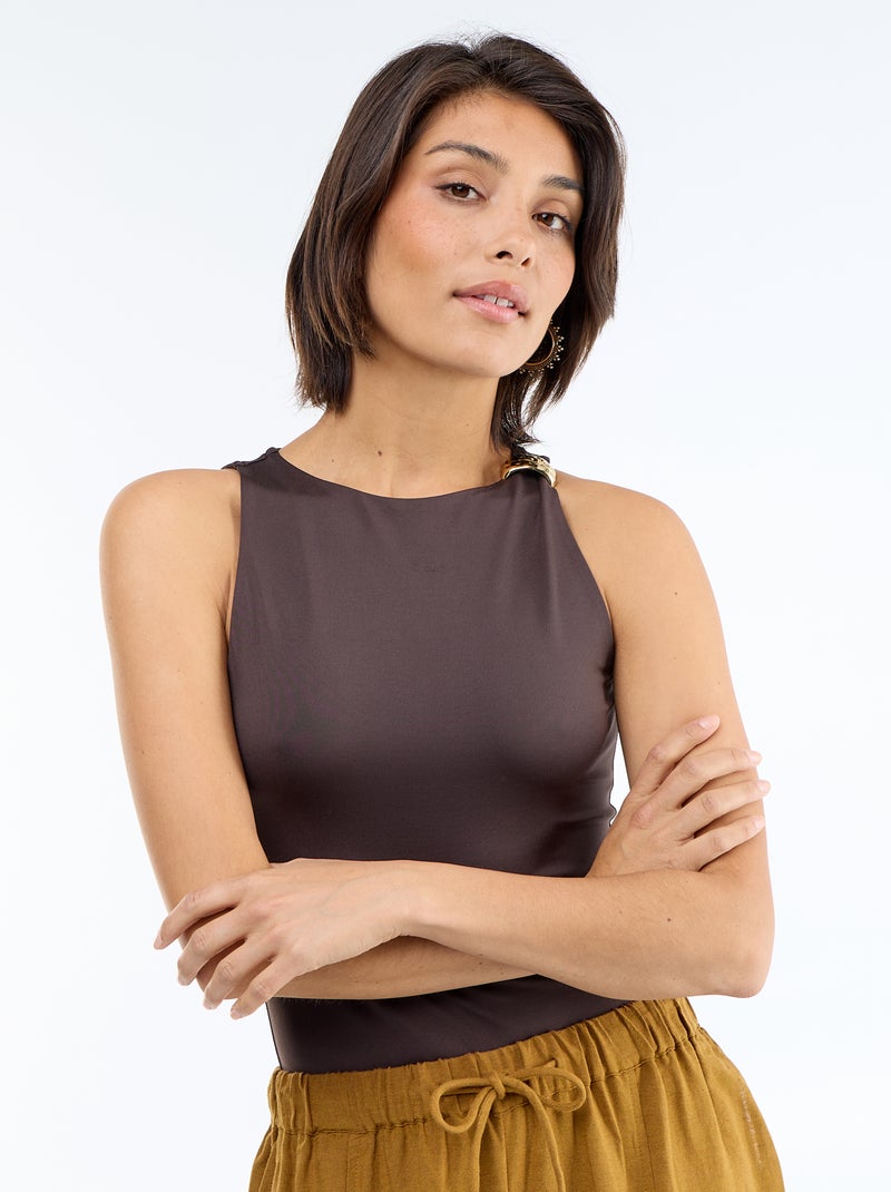 Body uni avec bijoux fantaisies aux bretelles - Marron