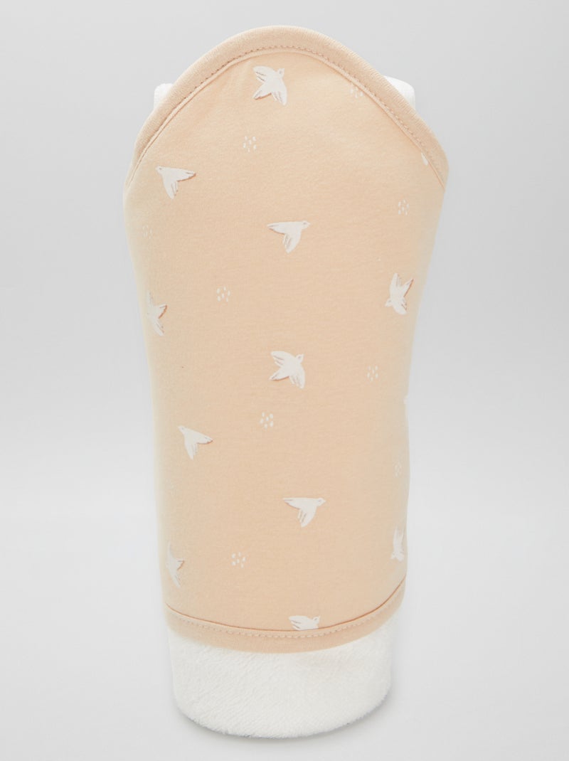 Une jolie cape de bain avec de petits motifs pour bébé à la sortie du bain.