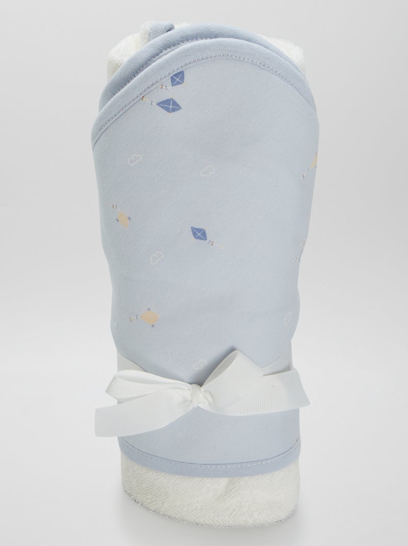 Une jolie cape de bain avec de petits motifs pour bébé à la sortie du bain.