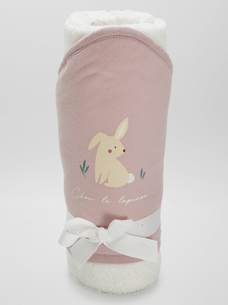 Une cape de bain pour bébé avec un bel imprimé. Parfait pour l'enrouler dès la sortie du bain.