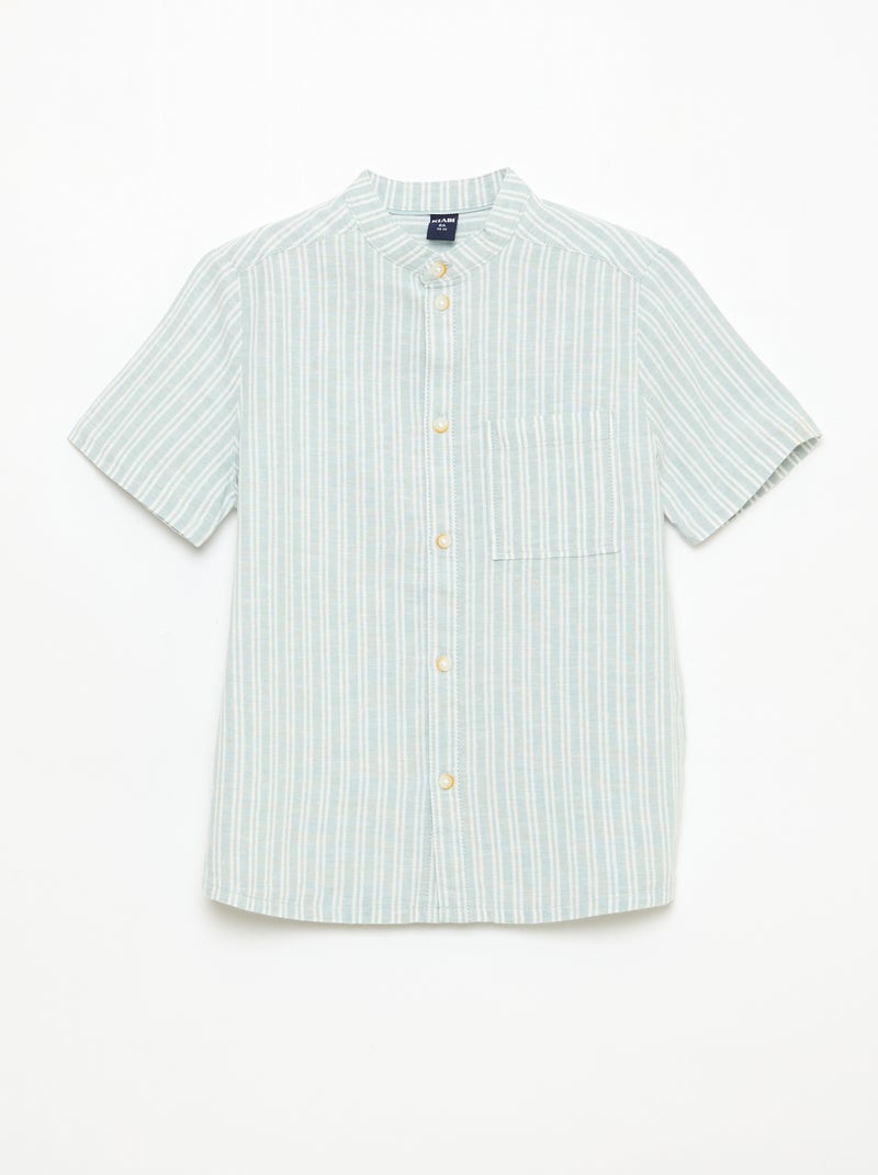 Chemise à col mao à manches courtes en coton et lin - Kaki