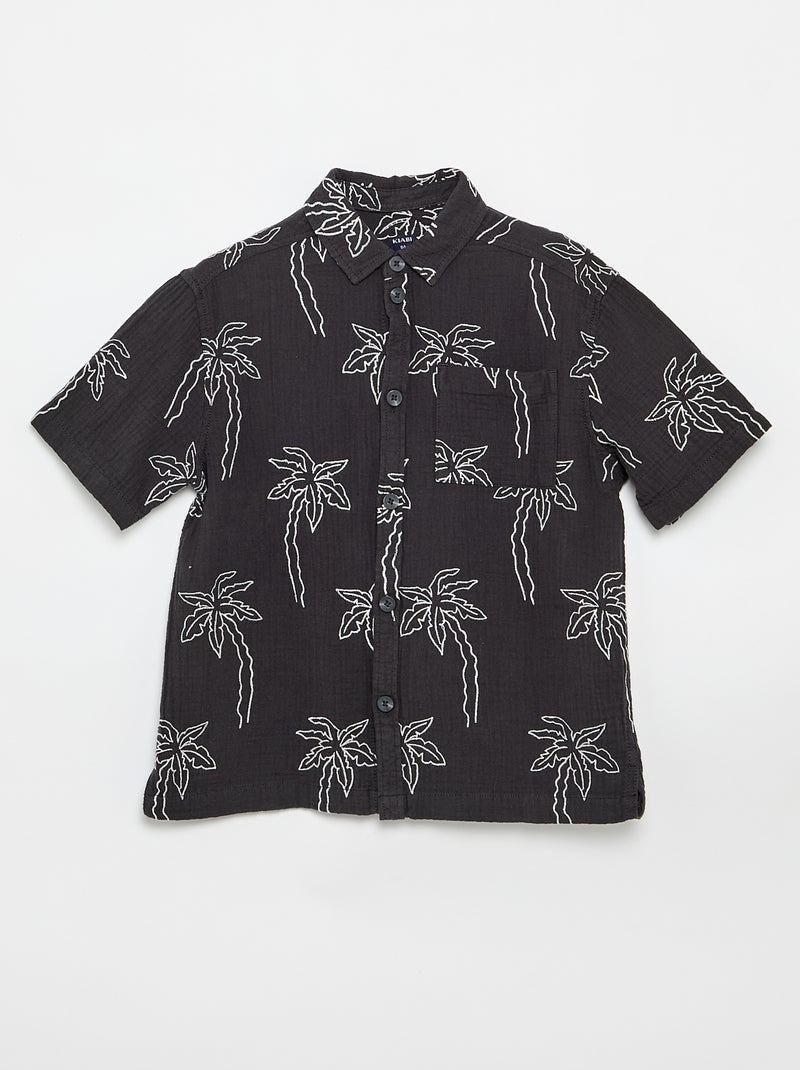 Chemise à manches courtes en gaze de coton - Noir