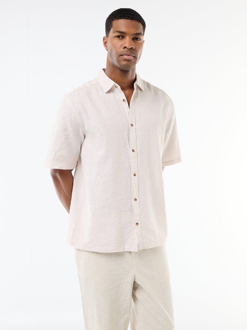 Chemise à manches courtes en lin mélangé - Ecru