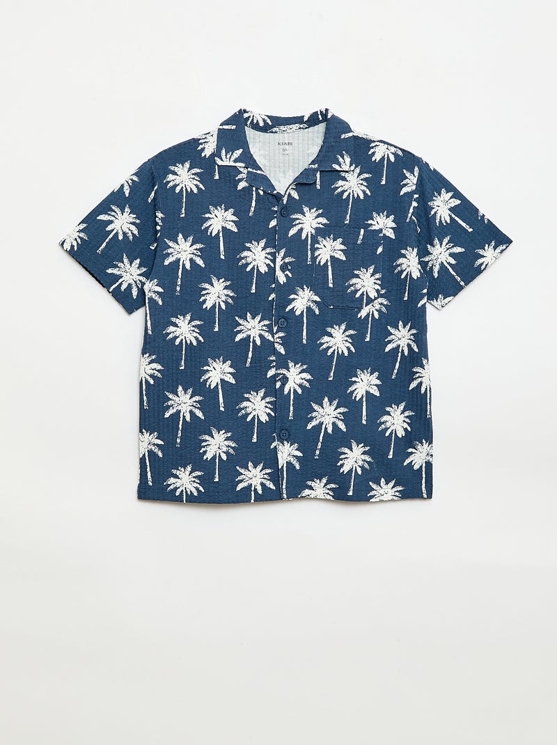 Chemise à manches courtes en nid d'abeilles - Bleu