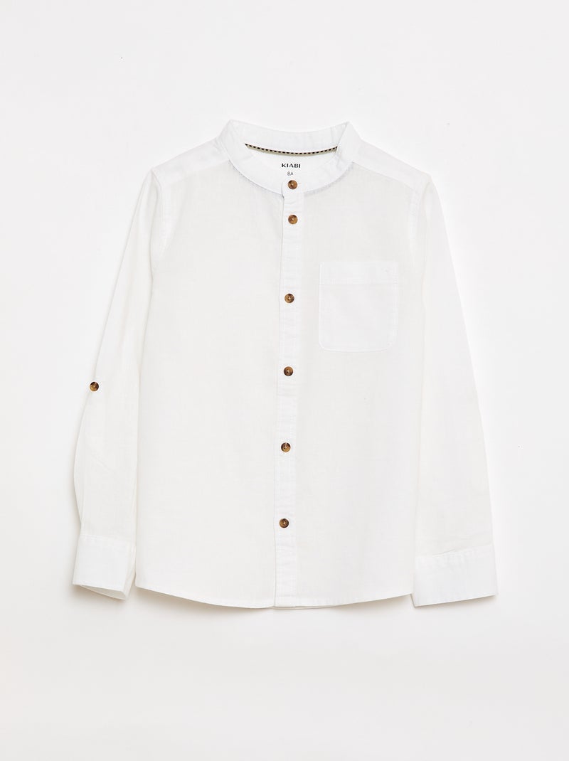 Chemise à manches longues en lin et coton - Blanc