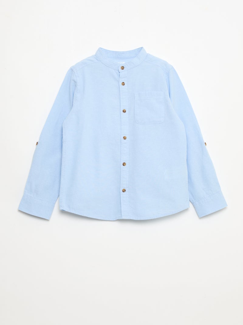 Chemise col mao en coton uni - Bleu