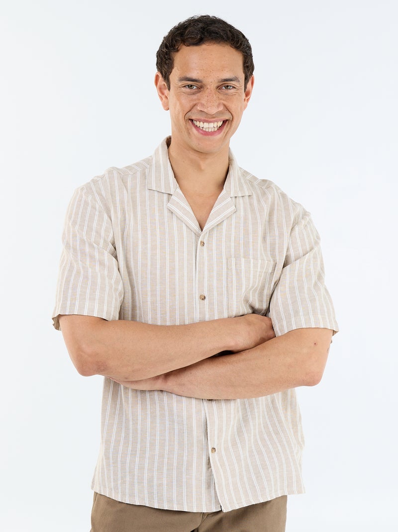 Chemise en lin mélangé à manches courtes - Beige