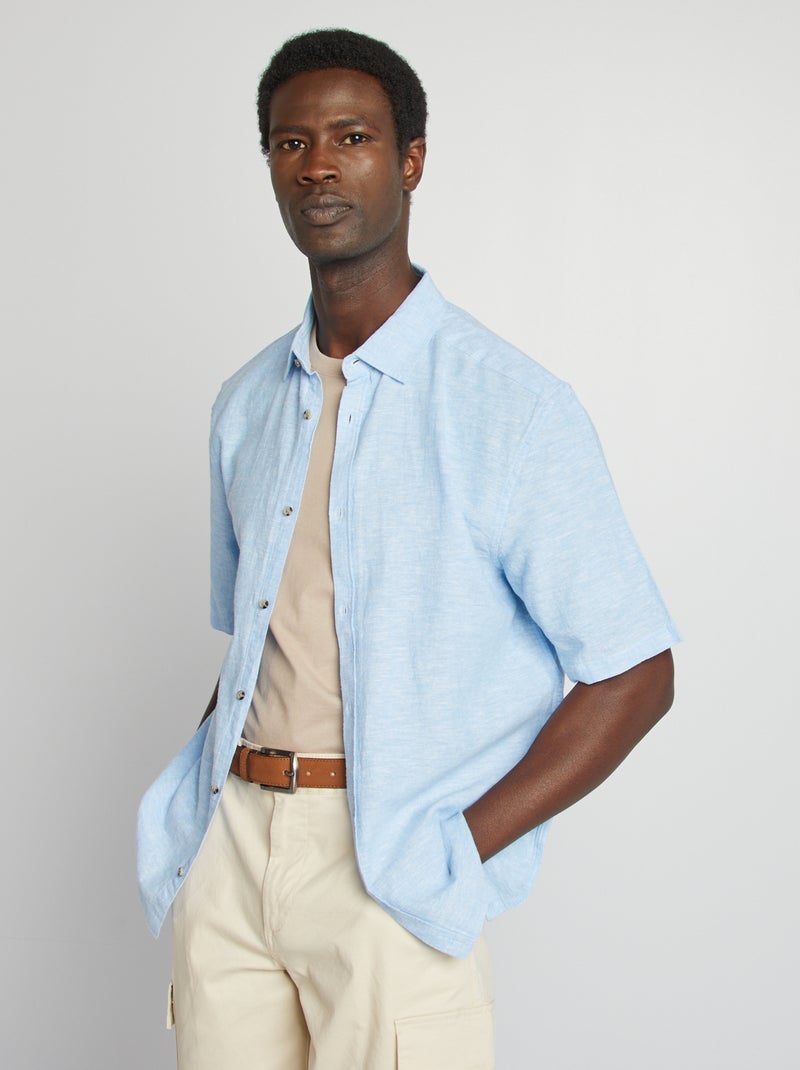 Chemise regular en lin mélangé - Bleu ciel