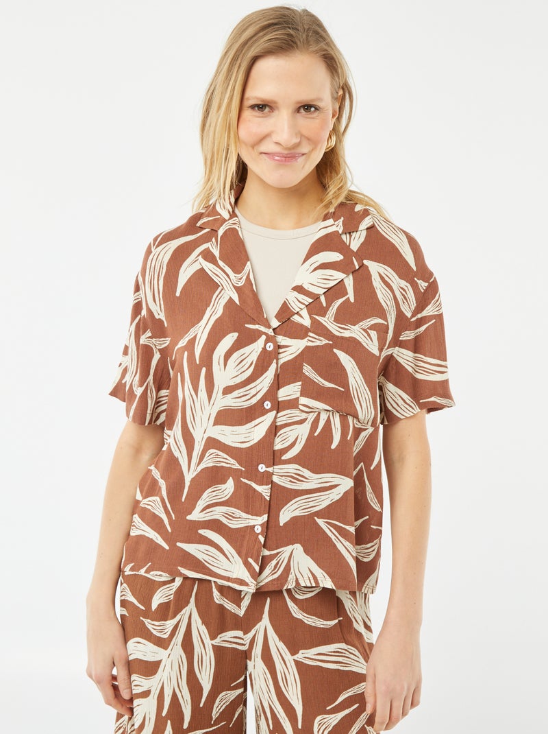 Chemisier maille crêpée manches courtes à motif - MARRON