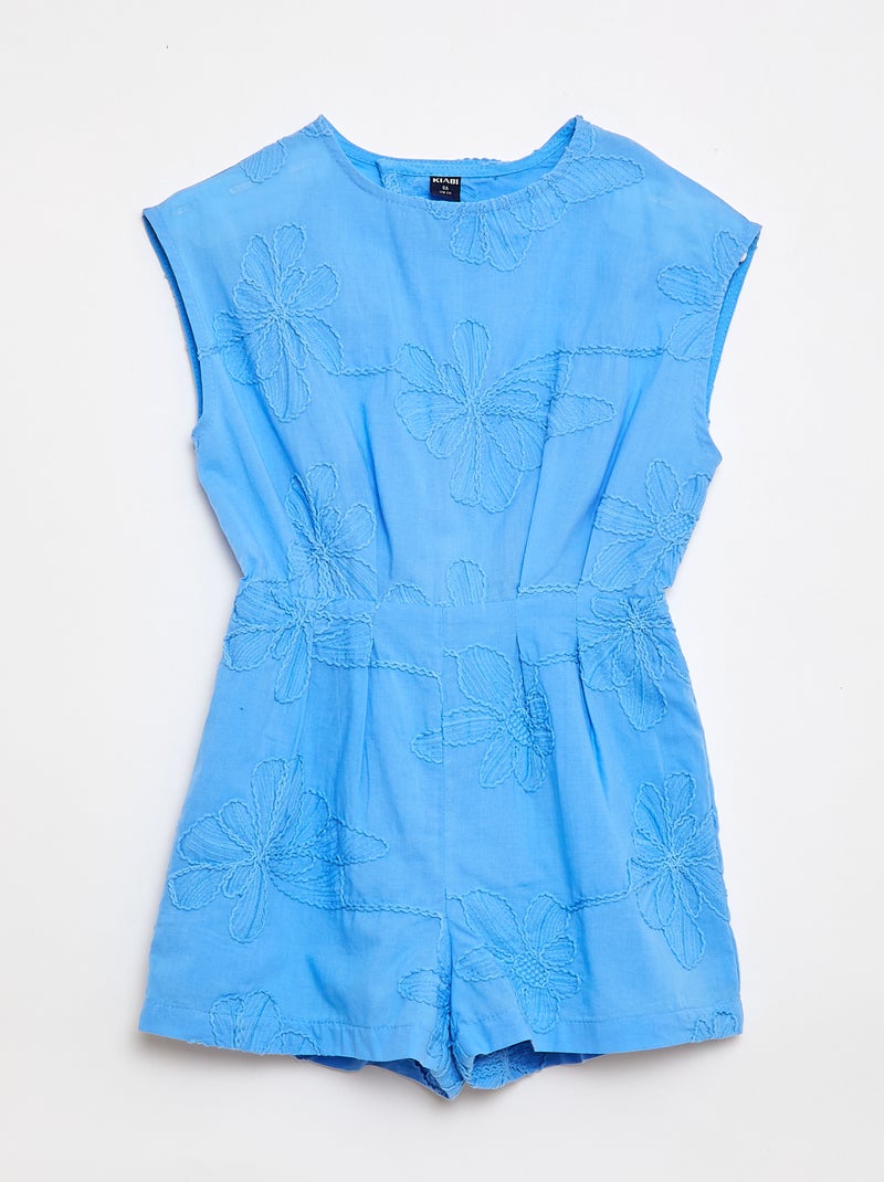 Combinaison short avec grandes fleurs brodées - Bleu