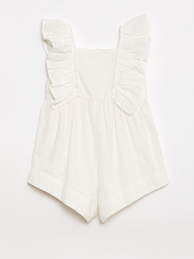Une combinaison short aux détails délicats avec sa broderie anglaise et ses volants