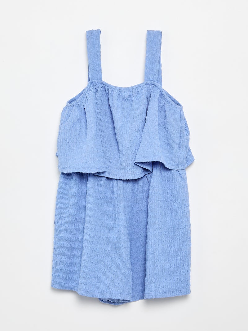 Combinaison short unie à bretelles en maille gaufrée - Bleu