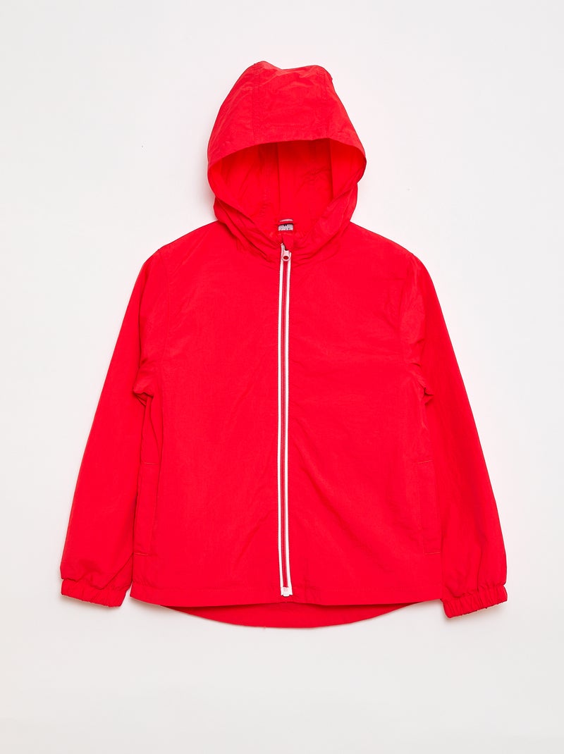 Coupe-vent uni pliable dans sa capuche - Rouge