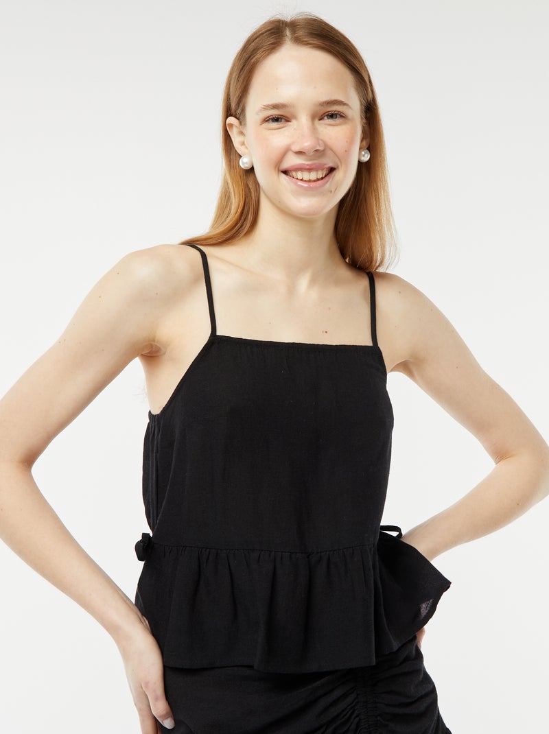 Débardeur à fines bretelles et motif - Noir