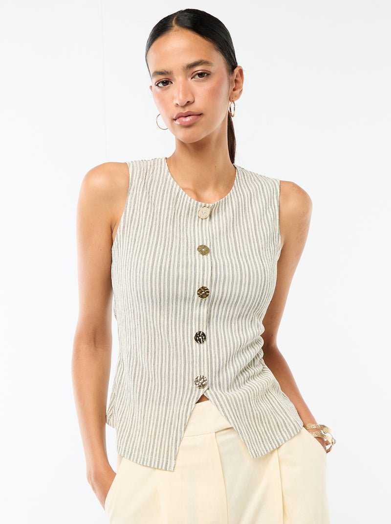 Débardeur avec ouverture par boutons dorés martelés - Blanc