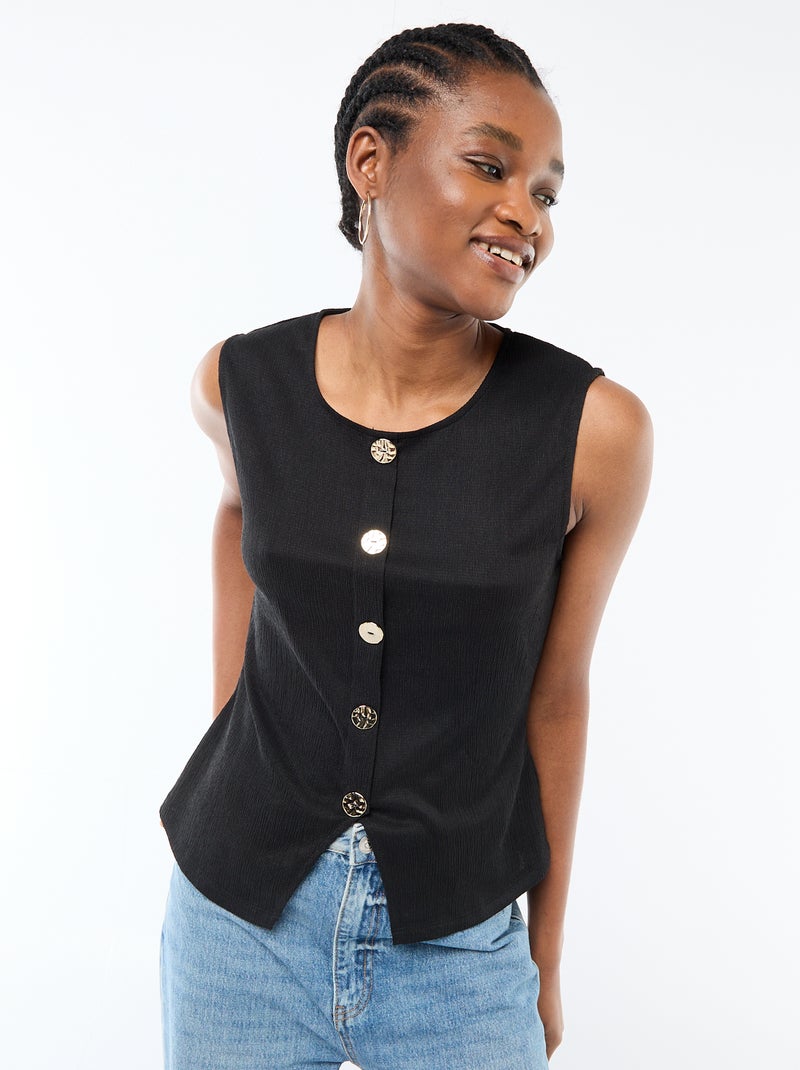 Débardeur avec ouverture par boutons dorés martelés - Noir