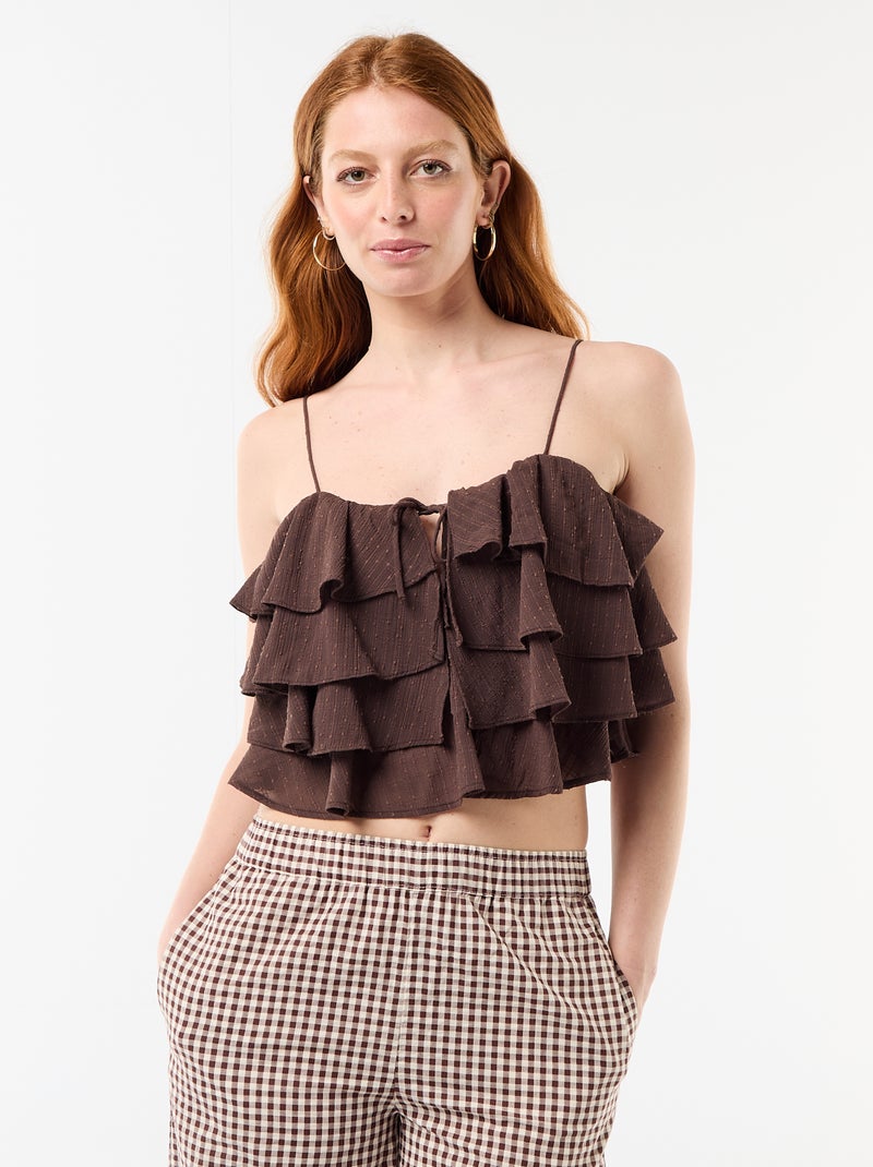 Débardeur avec volants et fines bretelles - Marron