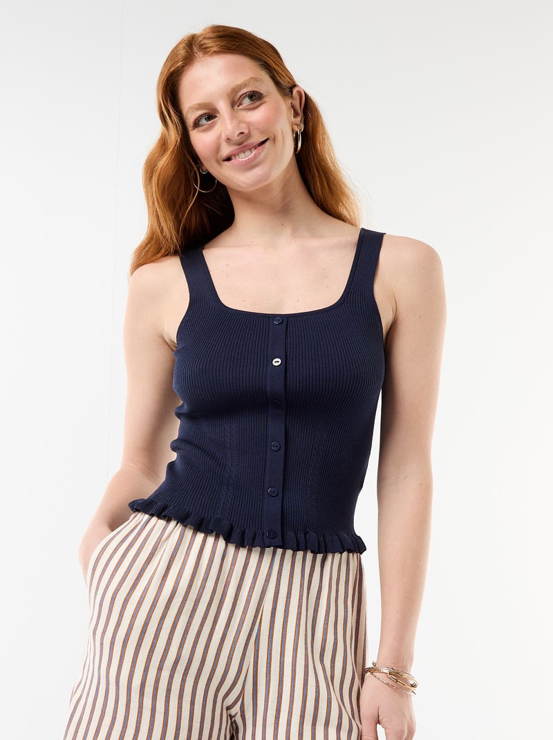 Débardeur côtelé avec ouverture boutonnée factice devant - Bleu