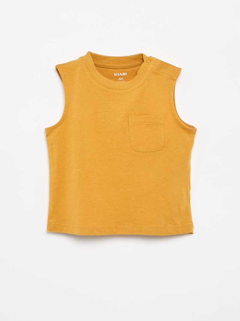 Débardeur en jersey de coton avec poche poitrine - Beige