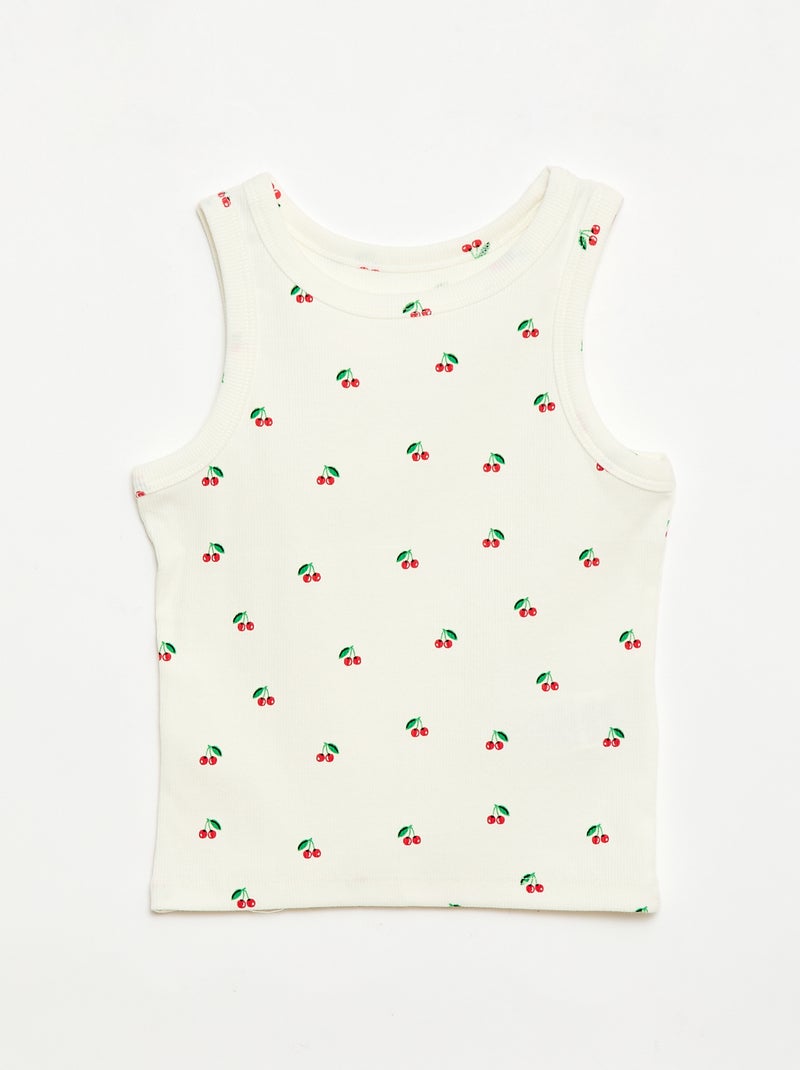 Débardeur en maille côtelée avec imprimé all over - Beige