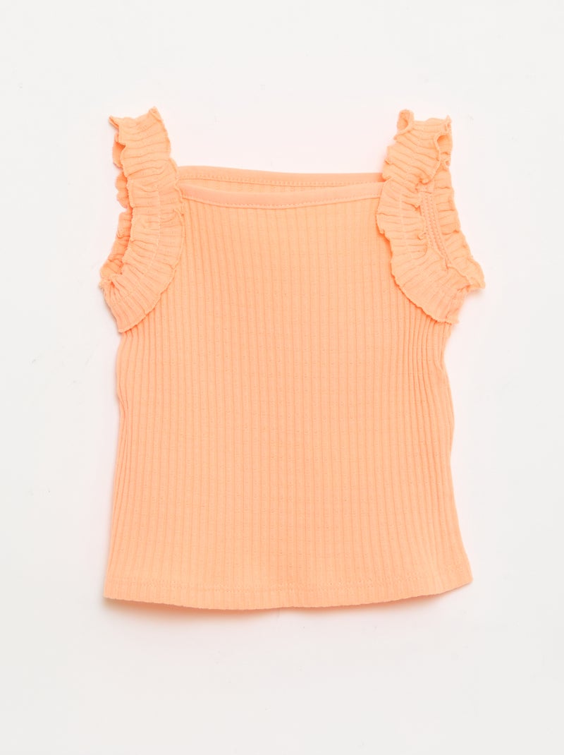 Débardeur en rib pointelle avec bretelles volantées - Orange