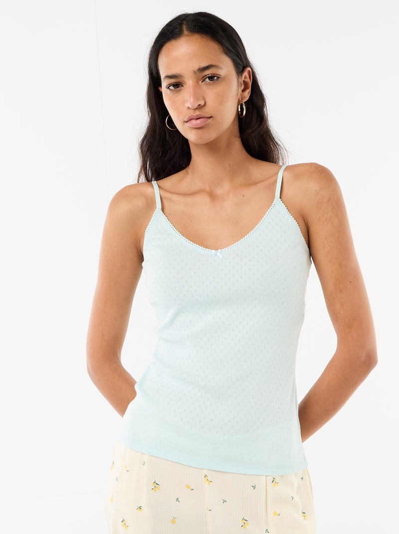 Débardeur fine bretelle réglable en coton uni - Bleu