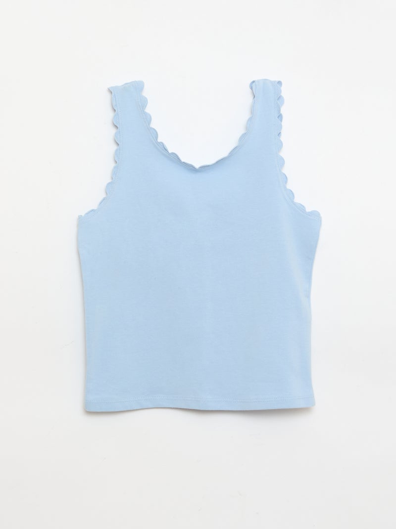 Débardeur uni avec bords ondulés - Bleu