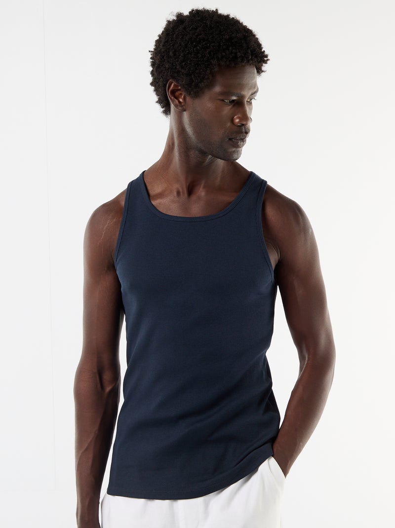 Débardeur uni en maille côtelée - Bleu